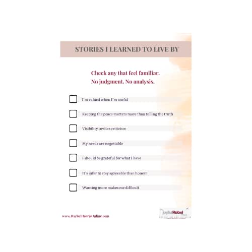 The Hidden Stories Inventory is a short, soulful self-assessment designed to help you notice those stories, without analyzing them, fixing them, or turning them into a project.